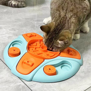 The SnuffleTwister involves moving the layers in a clockwise direction to unlock the food treasures hidden in the compartments. There are 2 layers that have to be twisted before all the food treasures can be food.